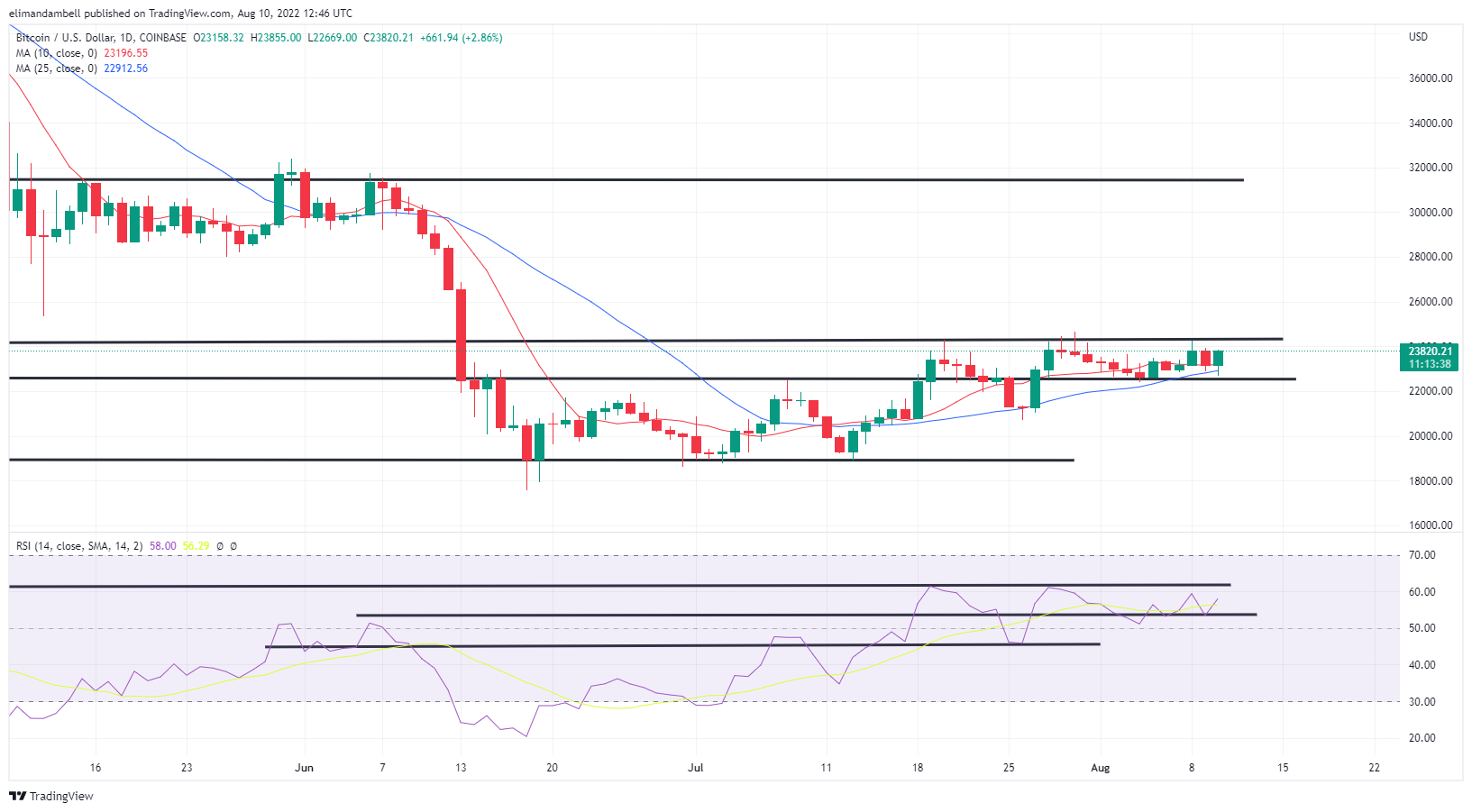 Following the report, which showed that inflation in the United States fell to 8.5% annualized in July, versus the expected 8.7%, BTC moved higher.